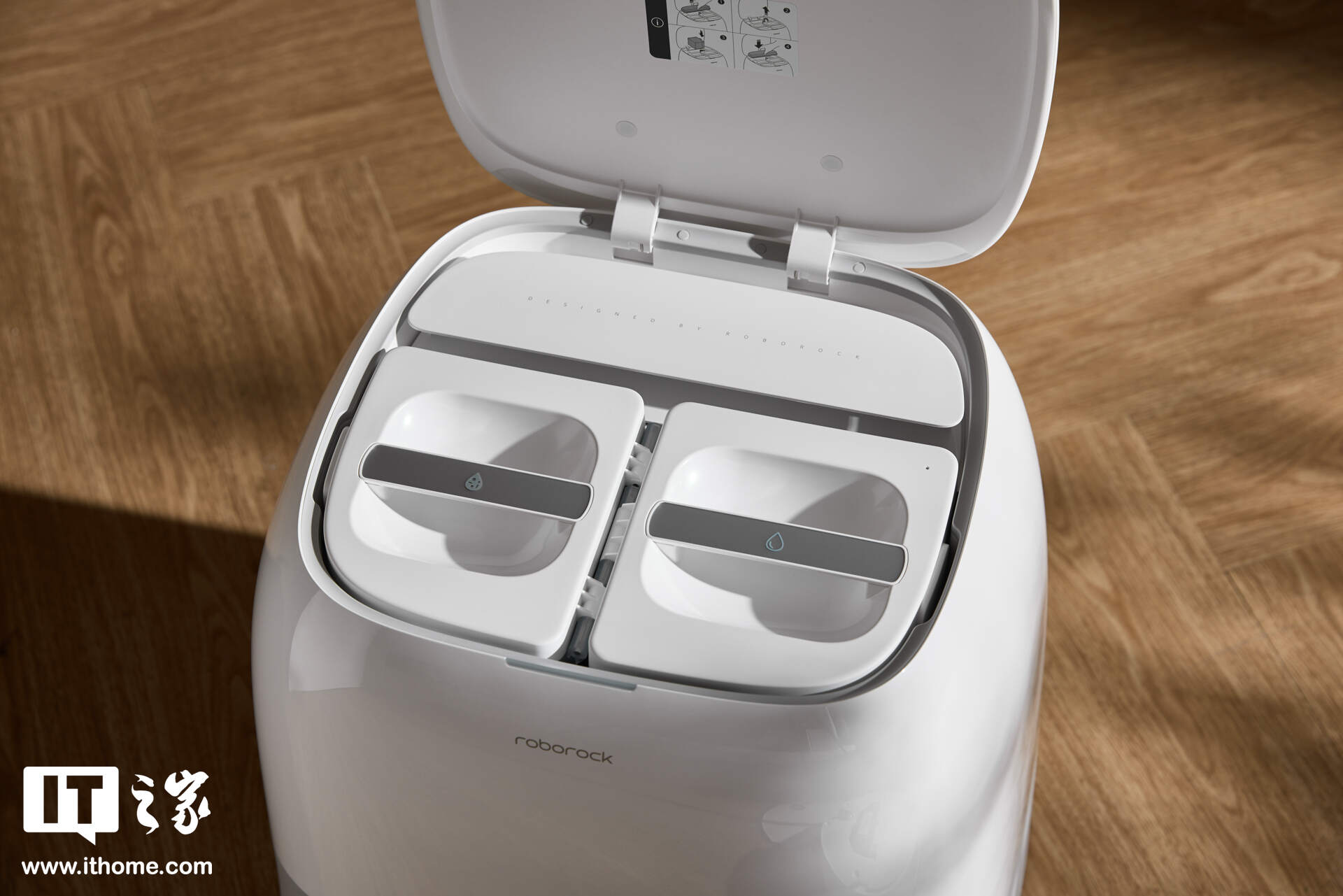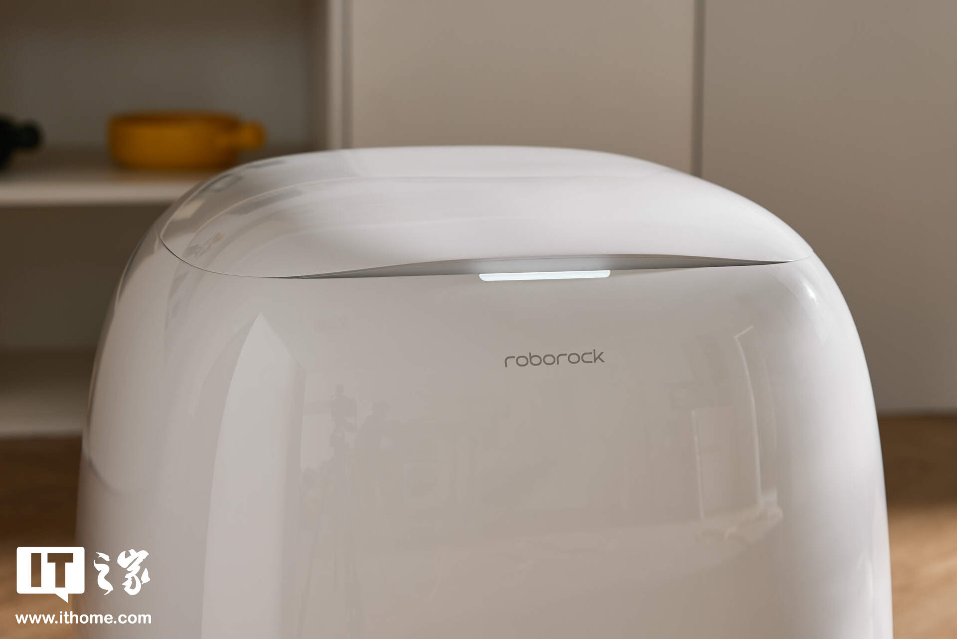 掀盖区域的缝隙里还藏了一枚长条状 LED 灯,会通过不同颜色变化直观显示设备状态(比如清洁中、需要换水、故障提醒等)。