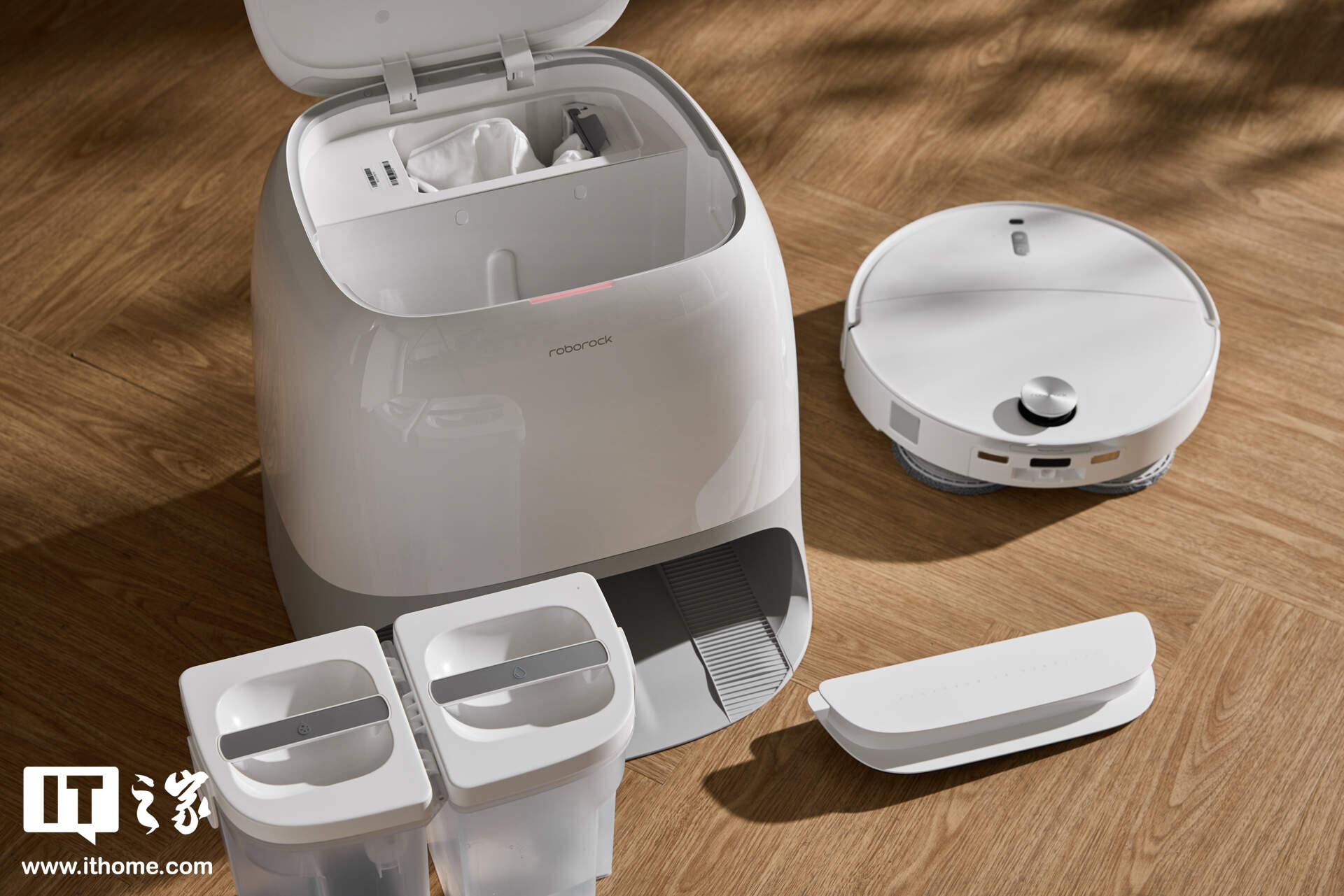 比如客厅、卧室有长绒地毯或地垫,想只扫地、或者先扫地毯时,机器会自动把拖布拆下来留在基站里;等需要拖地了,它又会自己回基站把拖布装回去,全程不用动手。