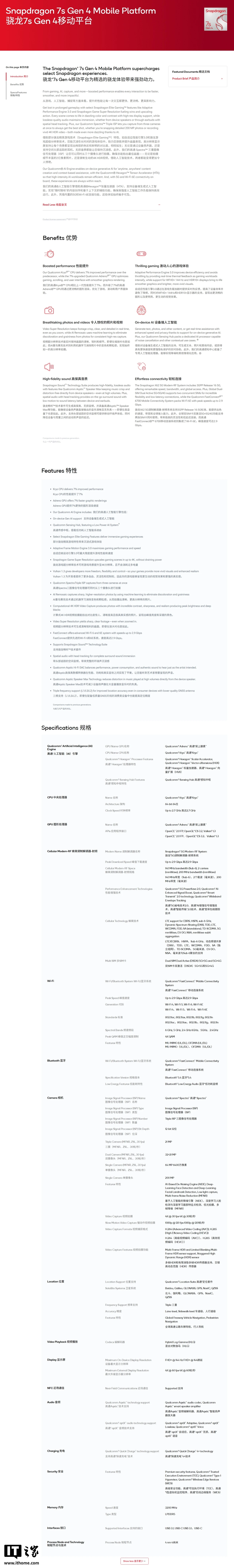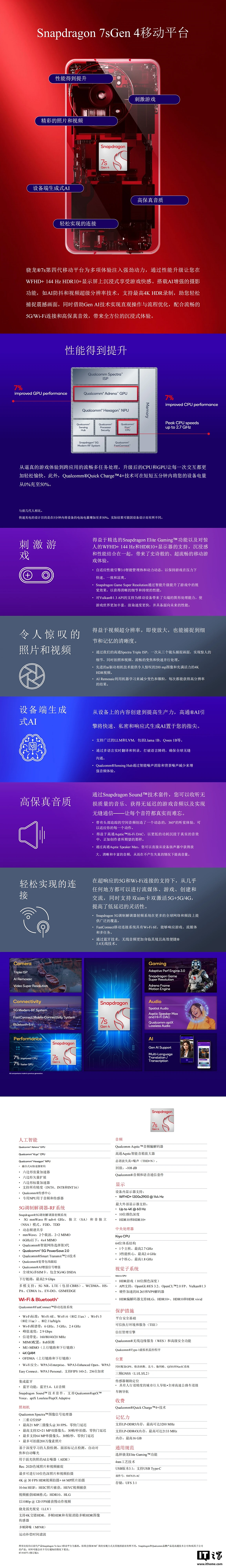 文章来源于互联网:第四代骁龙 7s 移动平台正式推出:4 纳米制程、CPU 性能提升 7%