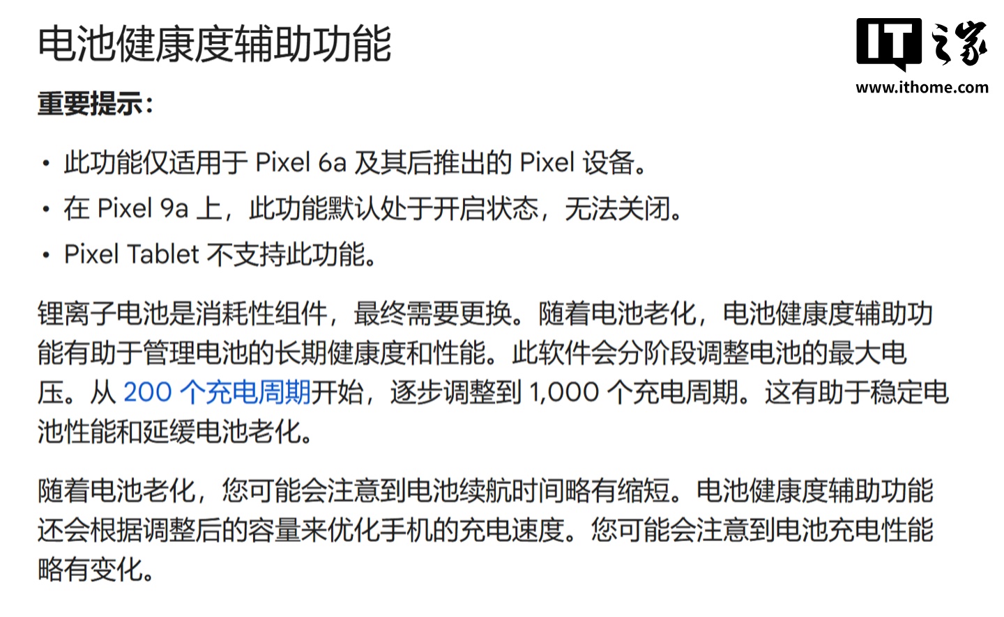IT之家注:“电池健康辅助”此前首次应用于 Pixel 9a,并已对部分机型强制推送。对于 Pixel 10 系列,谷歌则完全取消了关闭选项,用户只能被动接受这一机制。