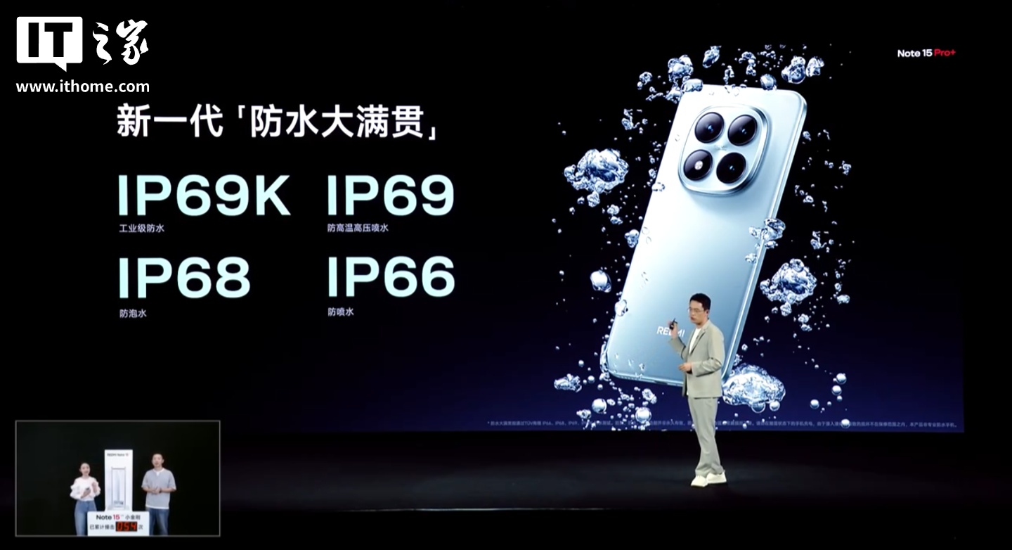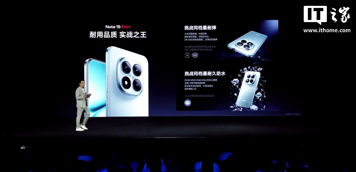 小米 REDMI Note 15 Pro+ 手机发布:首发第四代骁龙 7s、主打“真抗摔、真防水、长续航”,首发 1899 元起