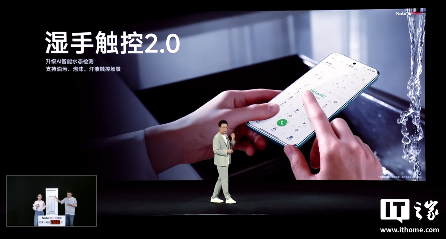 小米 REDMI Note 15 Pro+ 手机挑战同档最耐久防水,支持 IP69K+IP69+IP68+IP66 防护(新增 IP69K 认证,长时间防高温高压喷水),定制 17 组气密性结构件,通过防水耐久组合测试,获得 TÜV 南德五星长效防水品质认证,支持湿手触控 2.0。