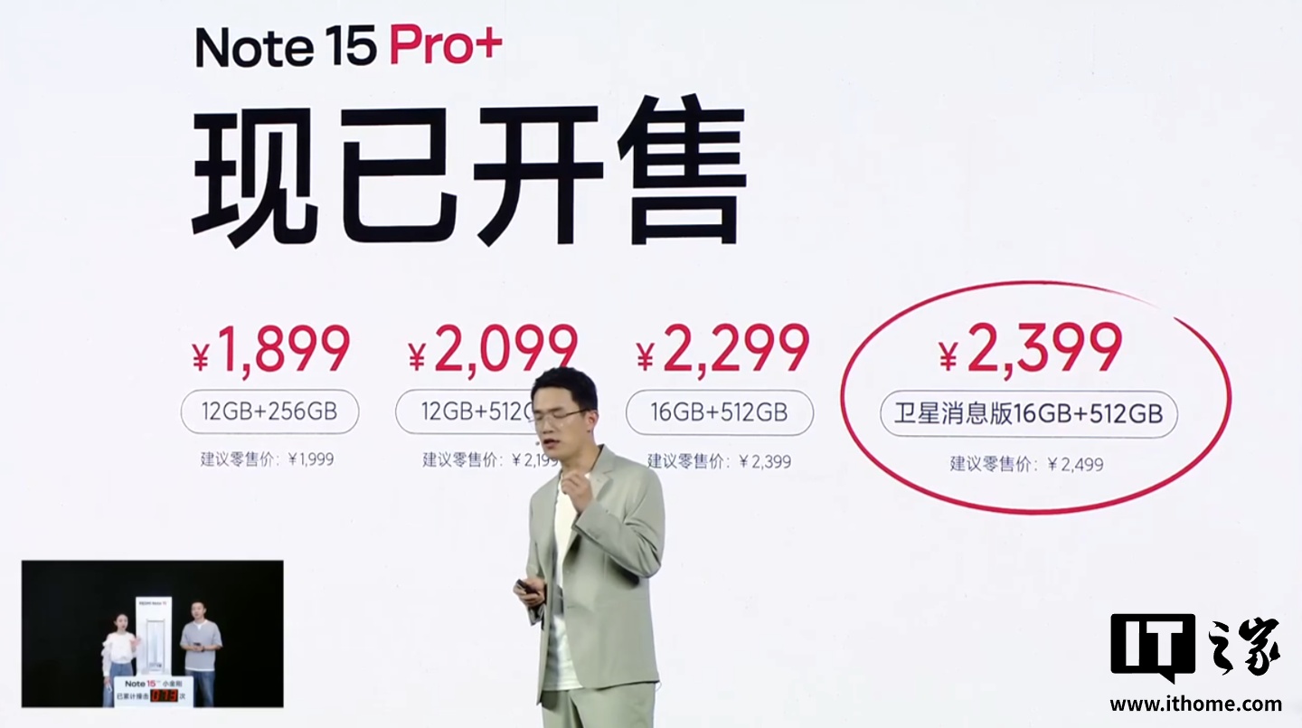 • 16GB+512GB 卫星消息版:定价 2499 元、首发 2399 元