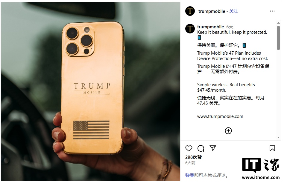 此外在手机外观方面,“特朗普手机”T1 也非常混乱。官方 Instagram 账号于 8 月 16 日发布动态,所展示的手机外观类似苹果 iPhone 16 Pro Max,但采用橙色方案,底部配有美国国旗。IT之家附上相关图片如下: