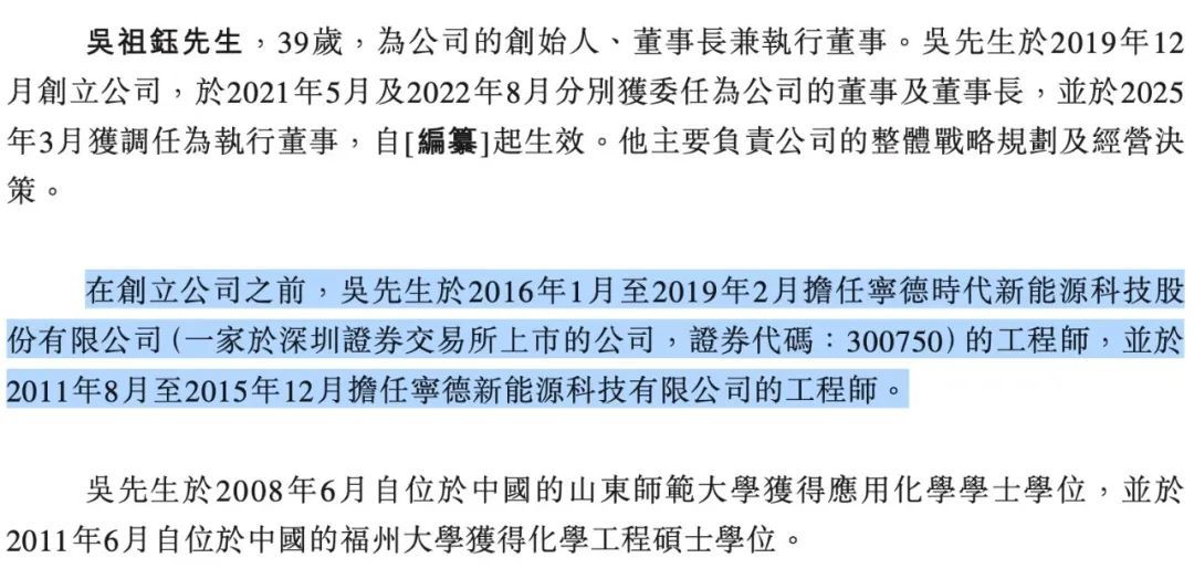 海辰储能四位执行董事,三位来自宁德时代,包括创始人吴祖钰。