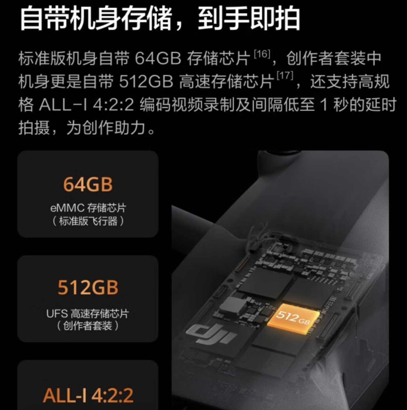 除了产品本身,产品定位方面也有一些问题。Mavic 4 Pro 的基础版(13888元)仅64GB存储,而512GB创作者套装售价高达23988元,但H.264 ALL-I编码等核心功能仅限高配版,被指“变相逼迫用户买顶配”
