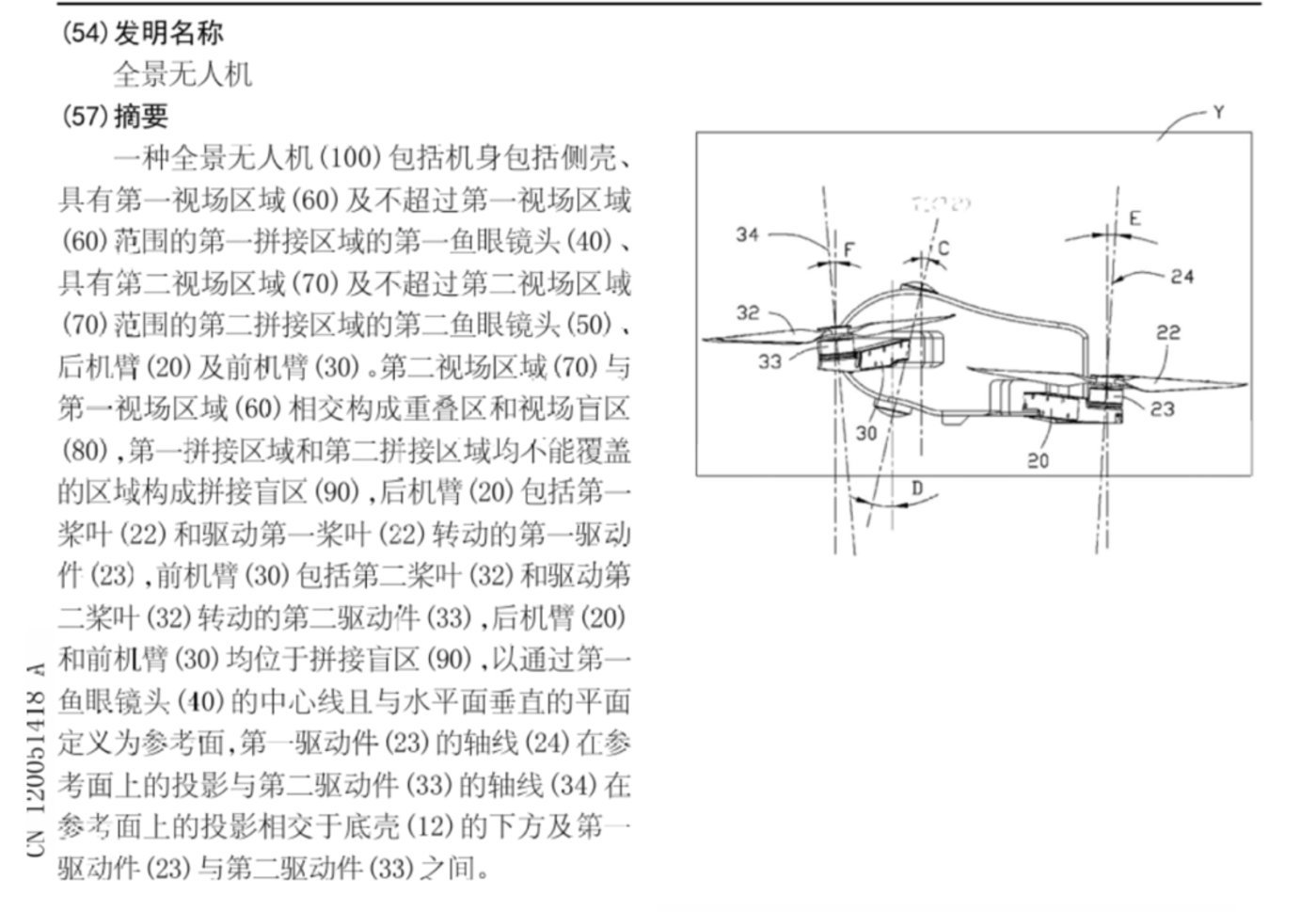 相比之下还是第二款产品有意思一点。第二款产品的整体外观更加接近主流的航拍无人机产品,比较突出的是无人机头部有个明显的隆起,在专利里把它称为“全景无人机”,隆起的应该是放全景相机的地方。