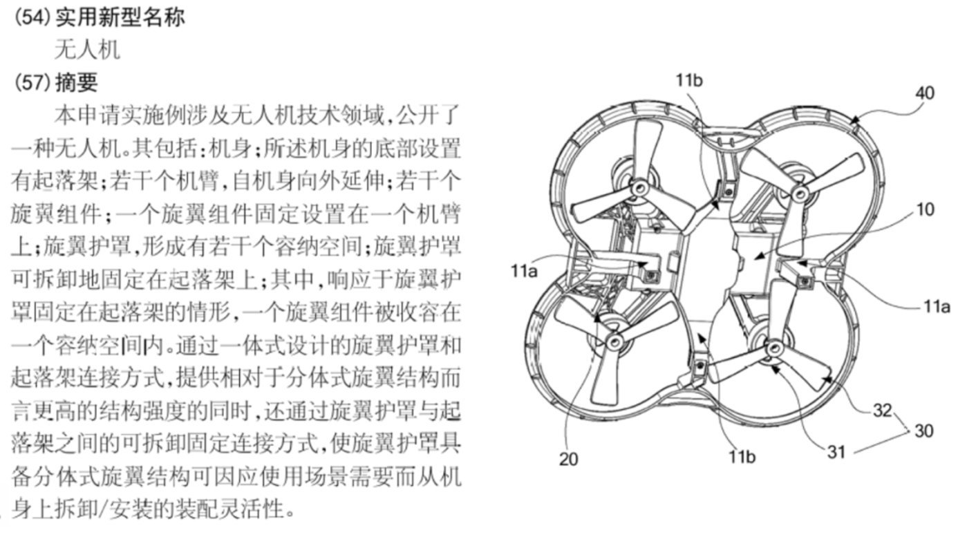 在对应专利里说这款产品的亮点是“可拆卸旋翼保护罩”,并且整个旋翼保护罩是“一体式设计”,简而言之产品围绕旋翼罩的保护性、灵活性做文章,并提供了拆装的玩法……