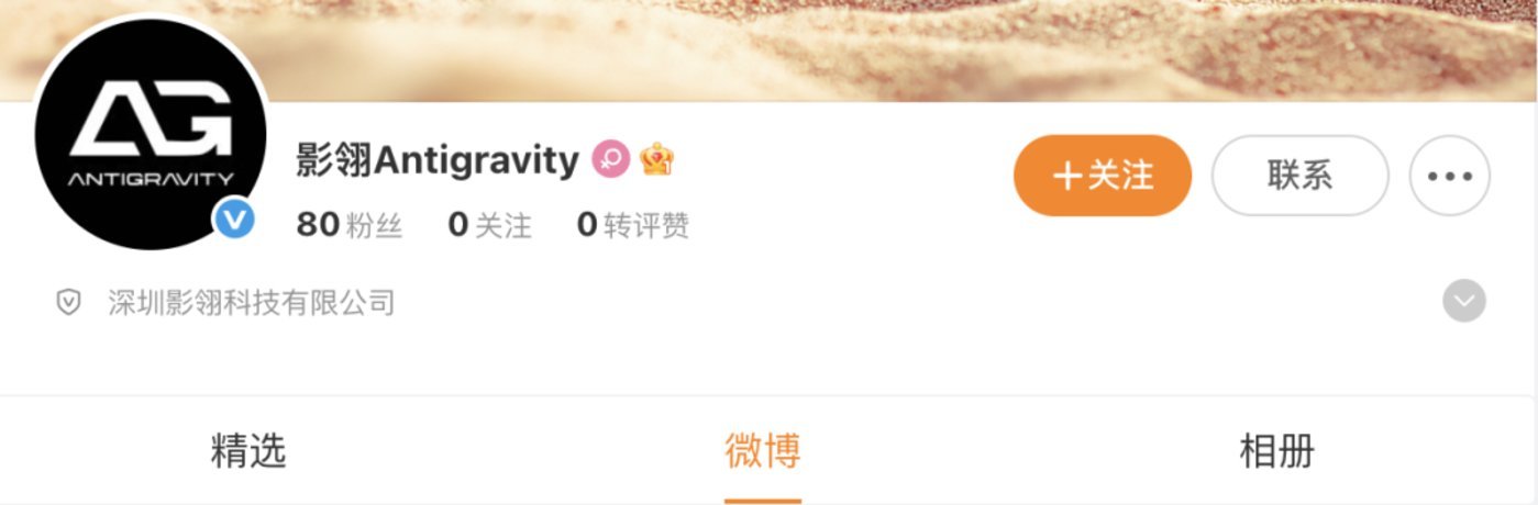 另外,在“全景无人机”的机身侧面印有“Antigravity”字样,有网友注意到微博上已经存在一个叫做“影翎Antigravity”的账号,注册主体是深圳影翎科技有限公司。