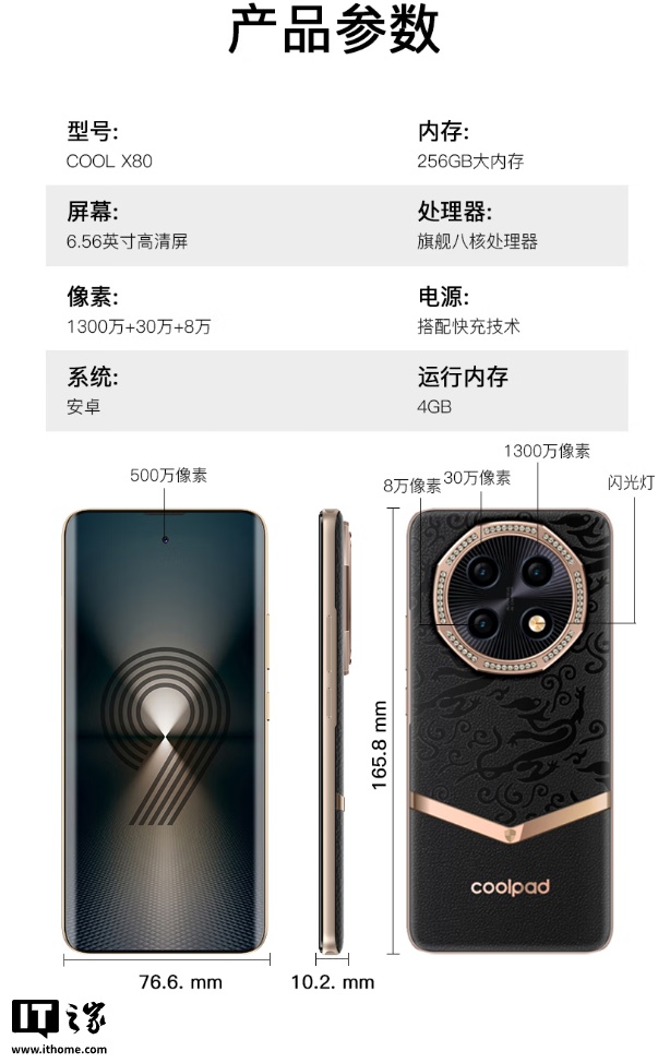 IT之家 8 月 28 日消息,酷派今天推出了 COOL X80 手机,搭载 6.5 英寸曲面屏 + 256GB“超大内存”,售价 999 元。