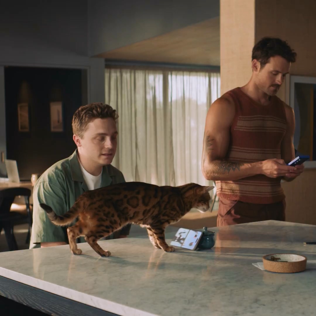 宣传视频中,一位 iPhone 16 Pro Max 用户试图将手机立于桌面观看视频,却被猫轻轻一碰就倒下。