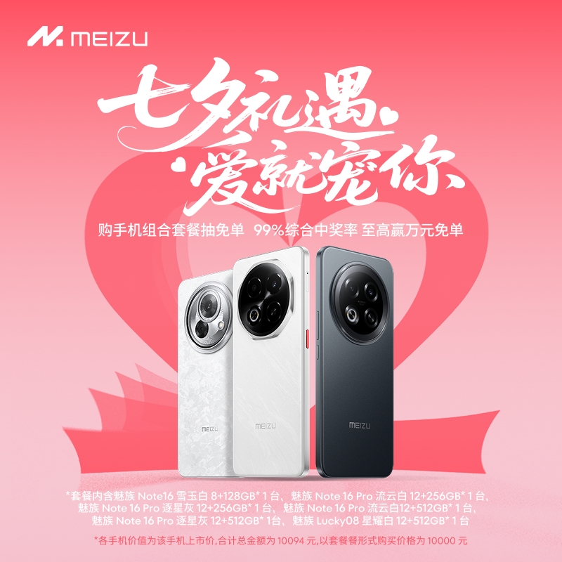 文章来源于互联网:售 1 万元:魅族推出七夕手机套装,含 6 台手机,涵盖 Note 16 Pro、Note 16、Lucky 08