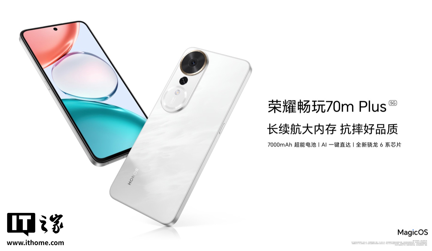 IT之家 8 月 31 日消息,荣耀现已在其商城悄悄上线一款“荣耀畅玩 70m Plus”手机,该机搭载第三代骁龙 6s 平台,匹配 12GB RAM,其中 256GB 存储空间版本定价 1599 元,512GB 存储空间版本定价为 1799 元。不过相应机型尚未在电商平台正式开售。
