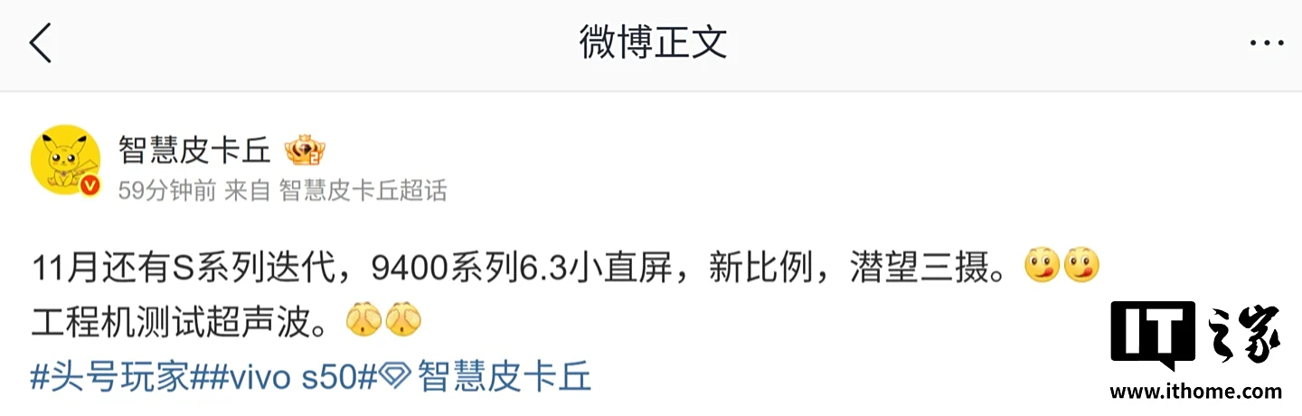 IT之家 9 月 1 日消息,博主 @智慧皮卡丘 今天在微博透露,某厂的 S 系列迭代手机将在 11 月发布。
