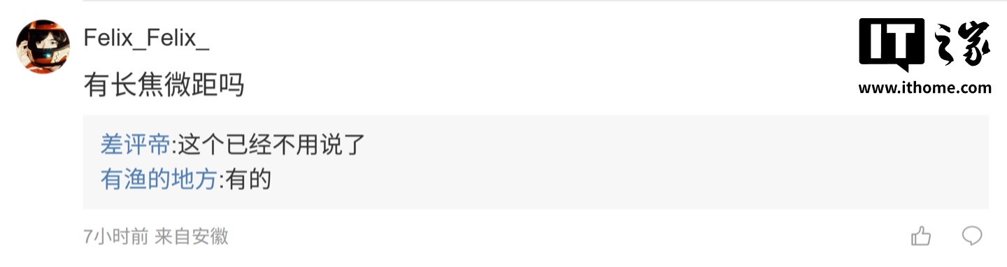 后续有用户在评论区询问:“有长焦微距吗”,博主回复道:“这个已经不用说了”。