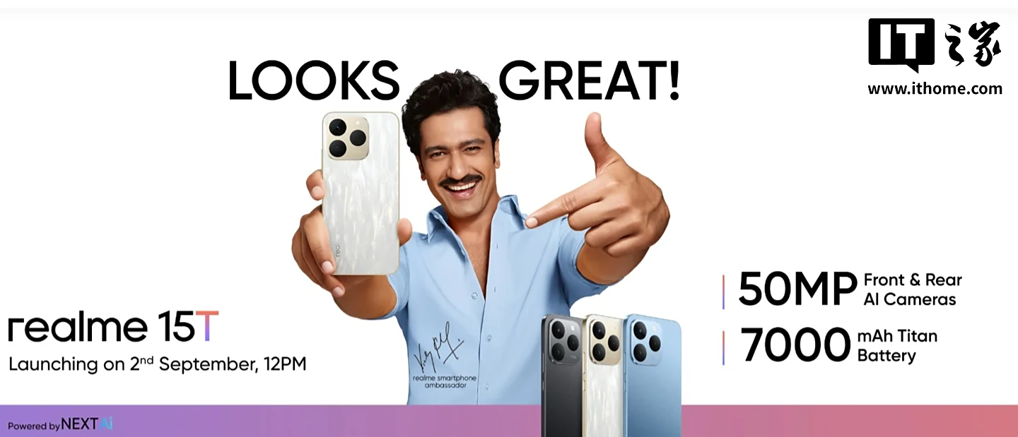 本月有望推国行版:realme 真我海外预热 15T 手机,6.57” 大 R 角直屏、7000mAh 电池