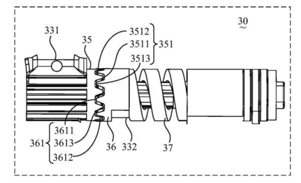 专利显示,该扭力组件包括主动件、被动件、第一啮合件、第二啮合件和复位件。