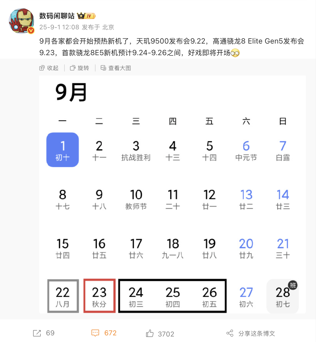 IT之家 9 月 2 日消息,随着小米澎湃 OS 3 正式发布,小米 16 系列手机也即将登场,参考博主 @数码闲聊站 消息,小米 16 系列手机将首发骁龙 8 Elite Gen5 芯片,有望在 9 月 24 日-9 月 26 日之间登场。