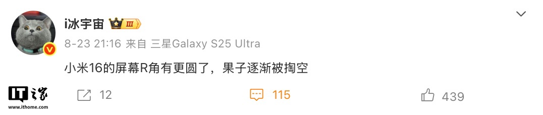 此外,综合该博主先前一系列爆料和博主 @i冰宇宙 消息,小米 16 系列手机将全系采用直屏设计,引入 LIPO 封装工艺,其边框宽度在 1.1-1.2mm 左右,比小米 15 的 1.38mm 更窄。其中,标准版和 Pro 版均为 6.3 英寸 1.5K 屏,“超大杯”机型则为 6.85 英寸 2K 屏,R 角更圆润。