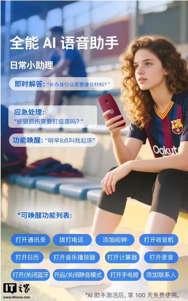 此外,这款手机还内置 AI 助手,采用 Deepseek 大模型,可向该助手询问生活问题、解答习题等,支持唤醒通讯录、电话、闹钟等系统内置应用。激活 AI 助手后可享 100 天免费使用。