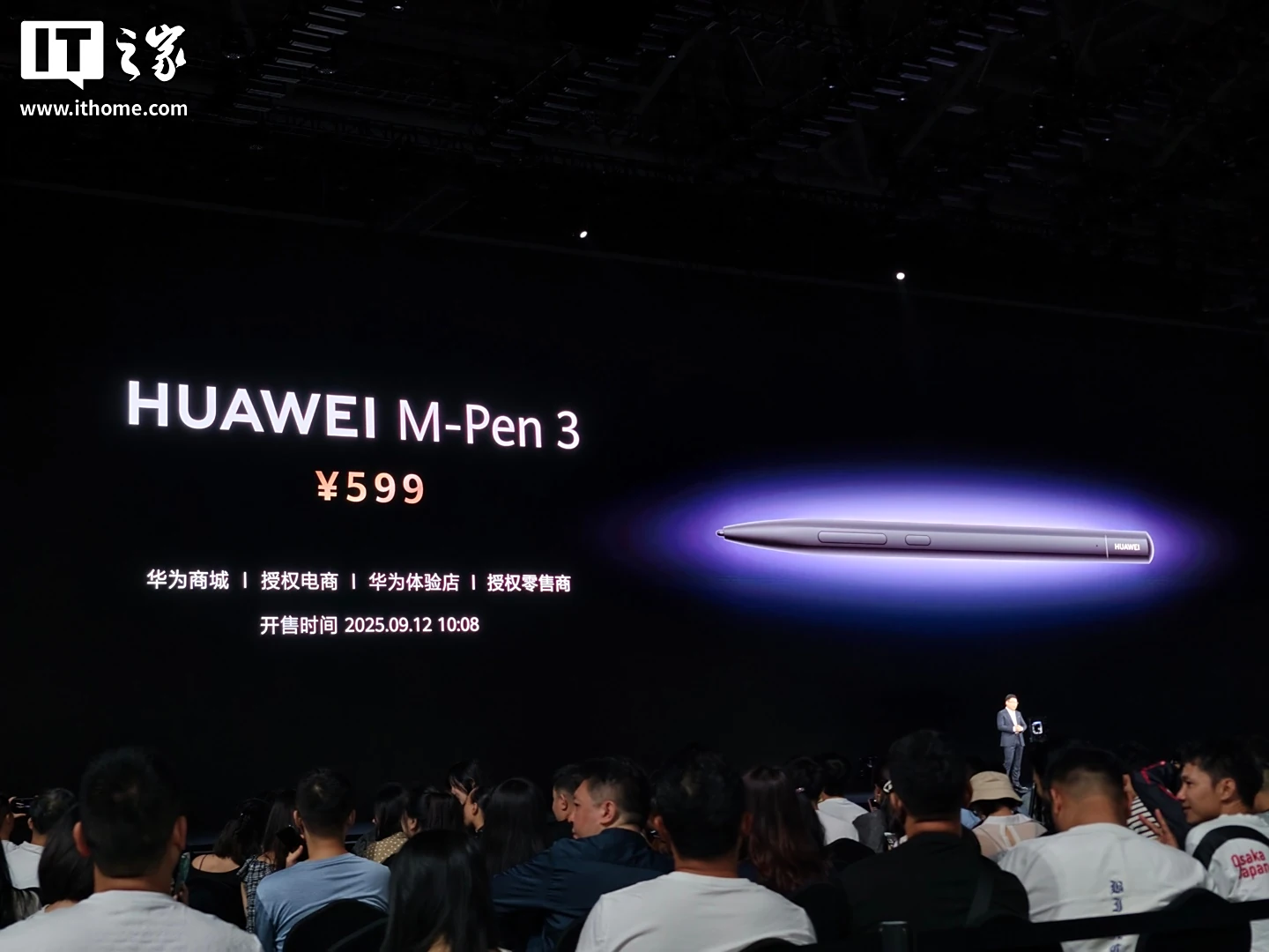 IT之家 9 月 4 日消息,在今日的华为 Mate XTs 非凡大师及全场景新品发布会上,华为公布了一款新的手写笔 —— 华为 M-Pen 3,售价 599 元。