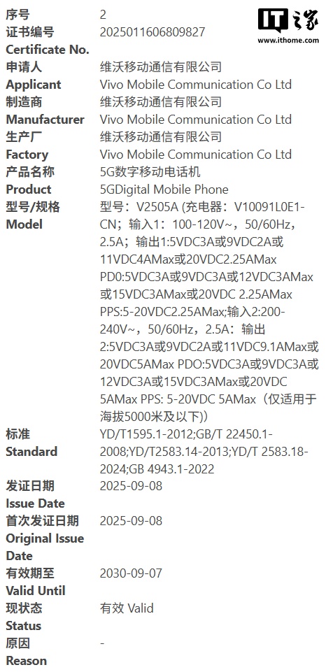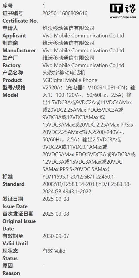 IT之家 9 月 9 日消息,国家质量认证中心显示,vivo 的两款新机现已通过 3C 认证。