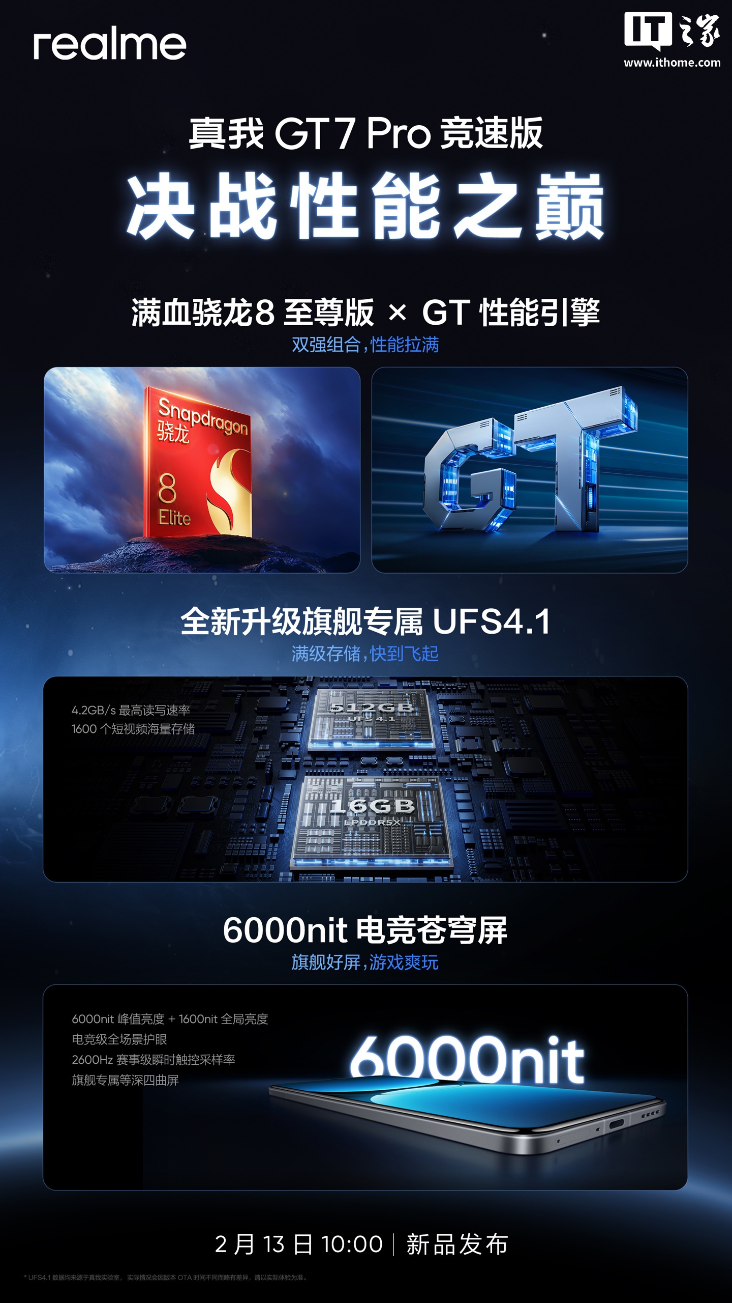 作为参考,真我GT7 Pro 手机搭载高通骁龙 8 至尊版处理器,配有 LPDDR5X 内存 + UFS 4.1 闪存,内置 6500mAh 泰坦电池,支持 120W 快充,可用“旁路充电”,插上电源适配器时直接向手机主板供电。