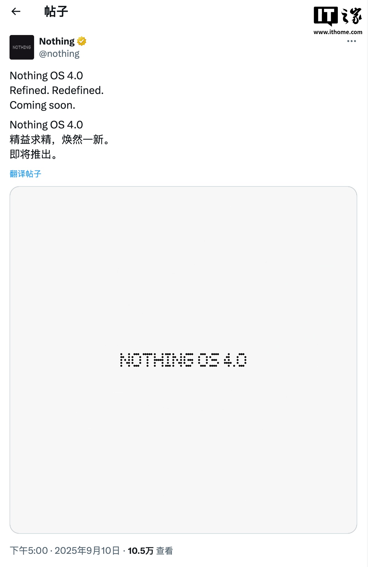 IT之家 9 月 10 日消息,Nothing 此前承诺,将在 9 月推出基于 Android 16 的 Nothing OS 4.0。时间来到今天,Nothing 在 X 平台发布了一段最新预告,展示了部分全新设计的图标。