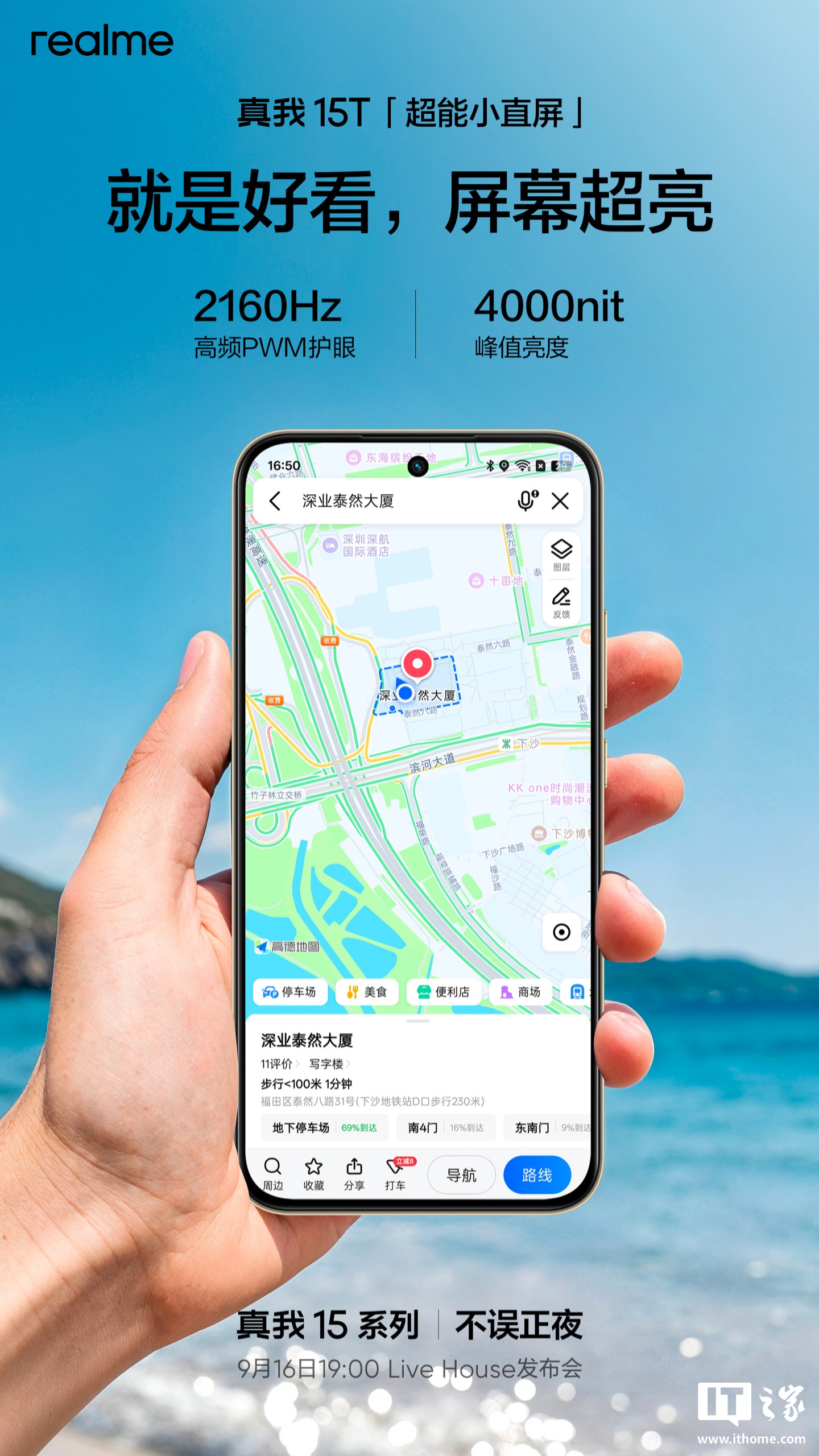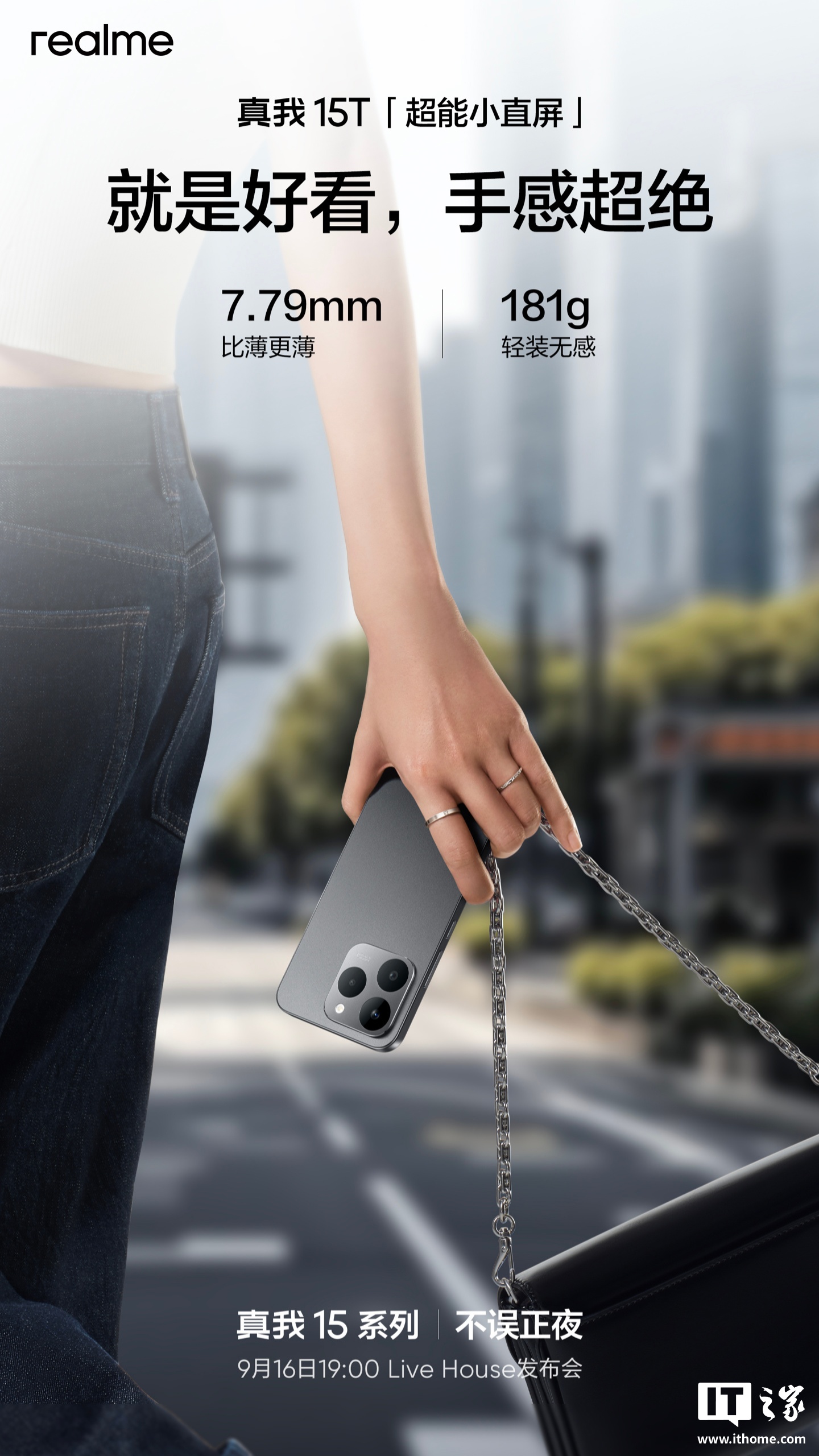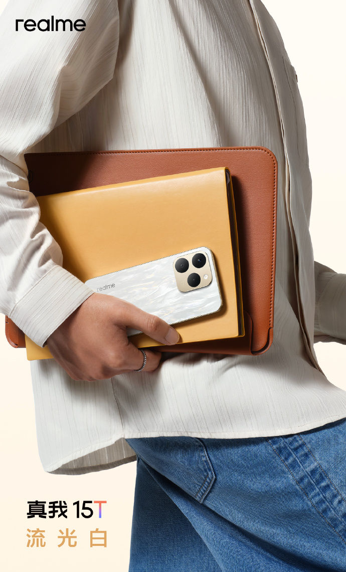 IT之家 9 月 15 日消息,真我 15T 手机已官宣定档 9 月 16 日发布,新机拥有流光白、夜光蓝以及魅影黑三种配色,并采用“真我首款优雅大 R 角设计”,配备极简金属 Deco。