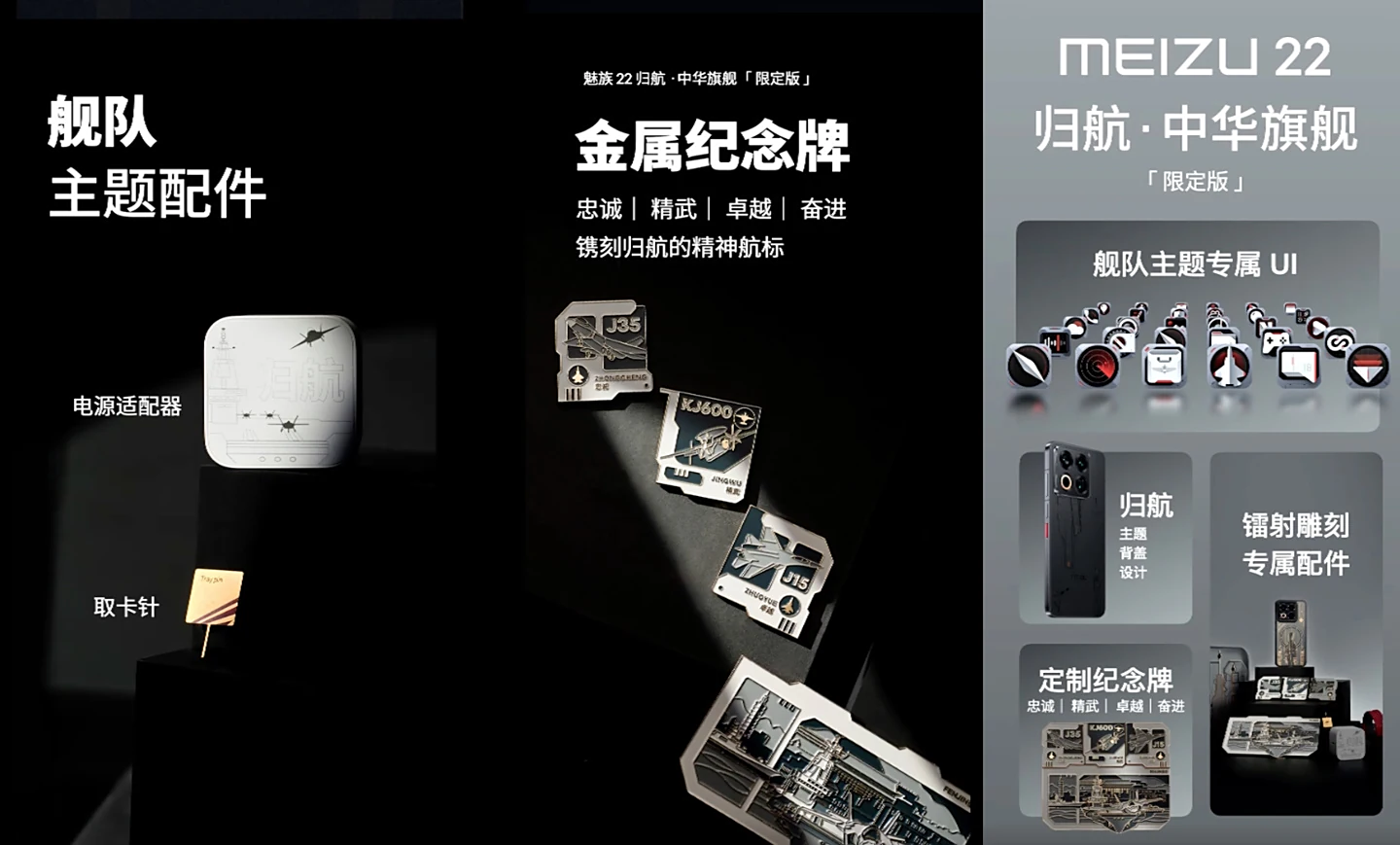 除了标准版外,官方还介绍了一款归航・中华旗舰限定版,提供定制 UI 和背盖设计,同时提供了舰队主题配件和金属纪念牌。