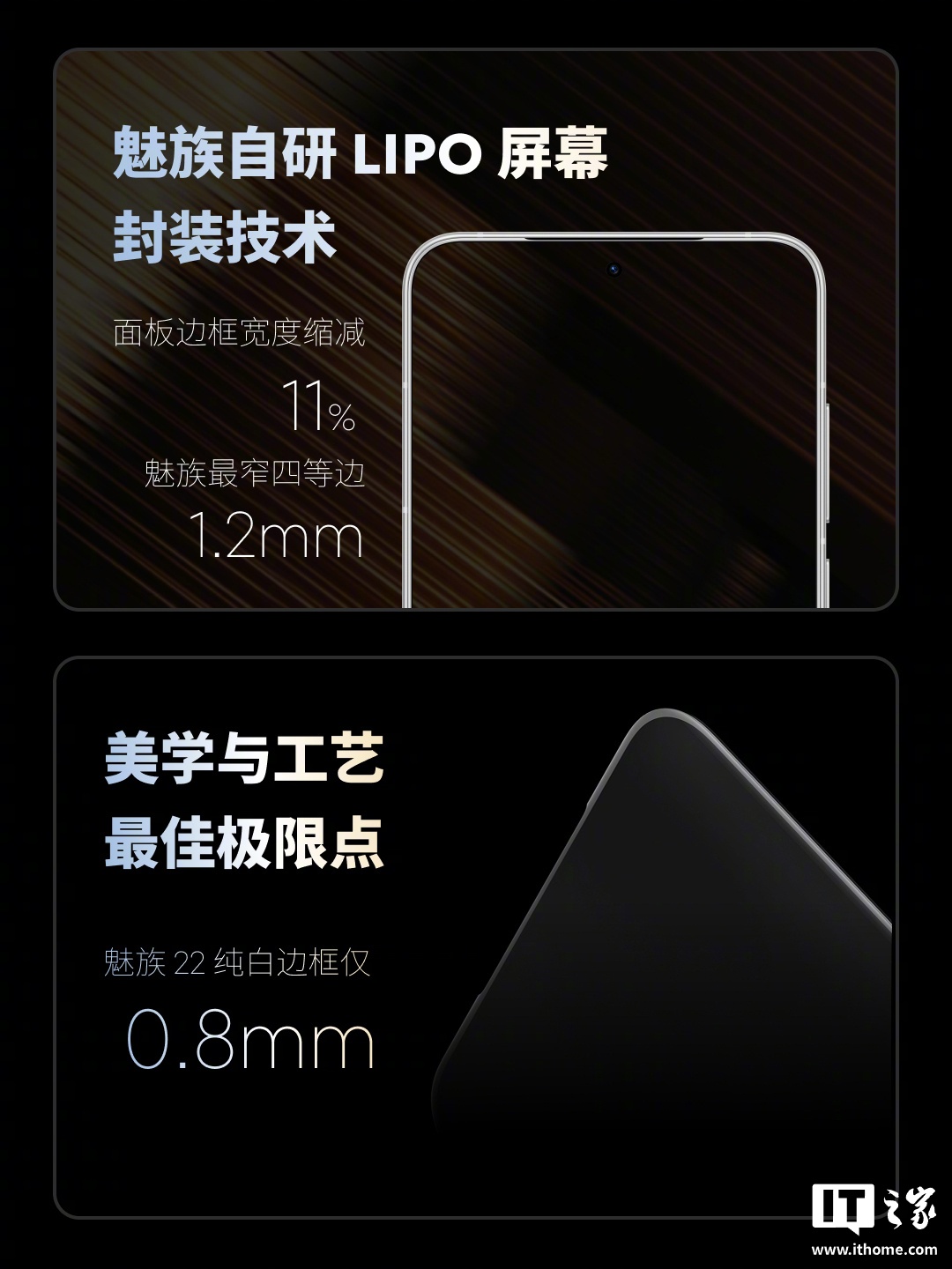 IT之家 9 月 15 日消息,在今天下午举行的魅族 22 旗舰手机暨 FlymeAIOS 生态发布会上,魅族 22 手机正式亮相。新机将悬浮式背盖设计与等深四曲 3D 背盖相结合,重约 190g 、机身厚度约 8.15mm,号称造就了 6.3 英寸同尺寸下最窄、手感最好的单手旗舰。