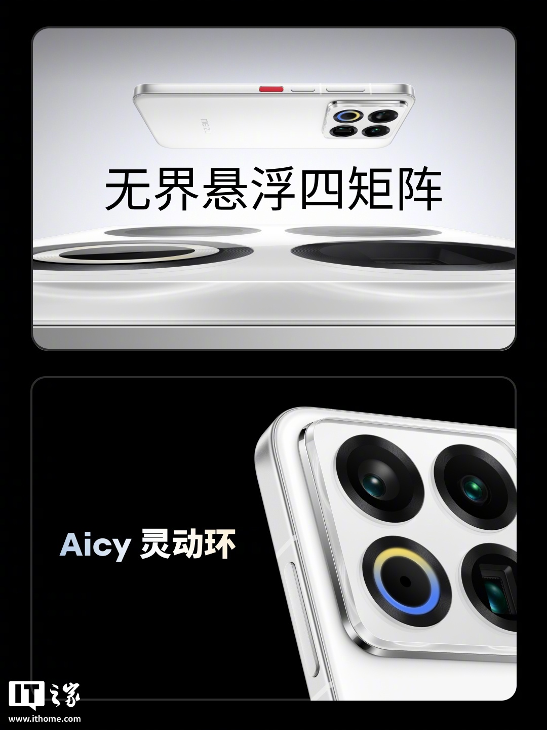 据介绍,魅族 22 还是魅族新一代「颜王」,在自研 LIPO 屏幕封装技术的加持下,还拥有 0.8mm 的纯白边框、无界悬浮四矩阵摄像 Deco 加上魅族经典 Aicy 灵动环。
