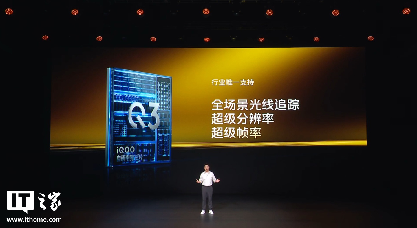 IT之家 9 月 23 日消息,在今天的 iQOO 15 电竞性能技术沟通会上,iQOO 自研电竞芯片 Q3 首发亮相,将支持更好的光影效果,号称开启「手机显卡」时代。该芯片将由 iQOO 15 手机首发。