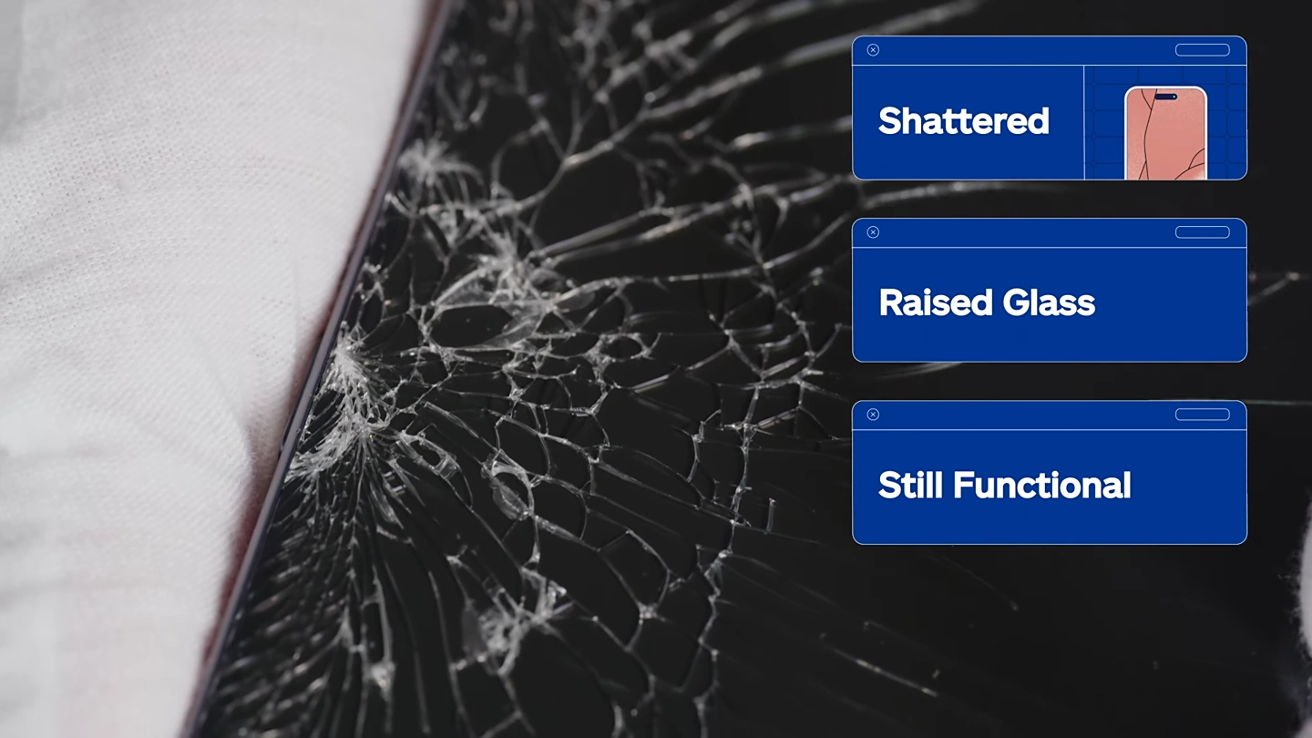 Allstate 使用其机器人测试设备“DropBot”和“BendBot”模拟常见意外情况。测试中,两款设备均能承受弯折压力并保持正常运行,但在从约 6 英尺(约 1.8 米)高度正面朝下跌落时,屏幕立即碎裂。