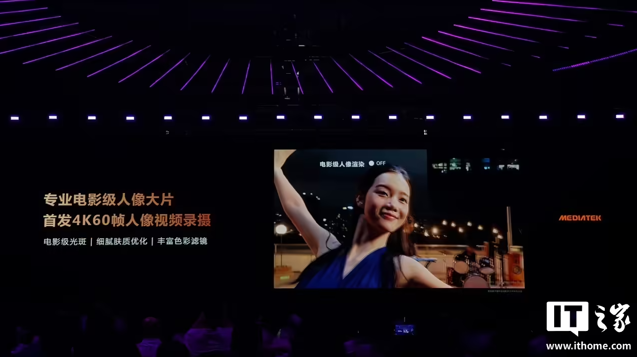 天玑 9500 还率先支持 4K 60 帧人像视频录制,涵盖电影级光斑、细腻肤质优化、丰富色彩滤镜等技术。此外,基于该芯片高能效 ISP,支持在 4K 120 帧视频录制上叠加双轨防抖算法,实现画面超稳定的高规格视频。