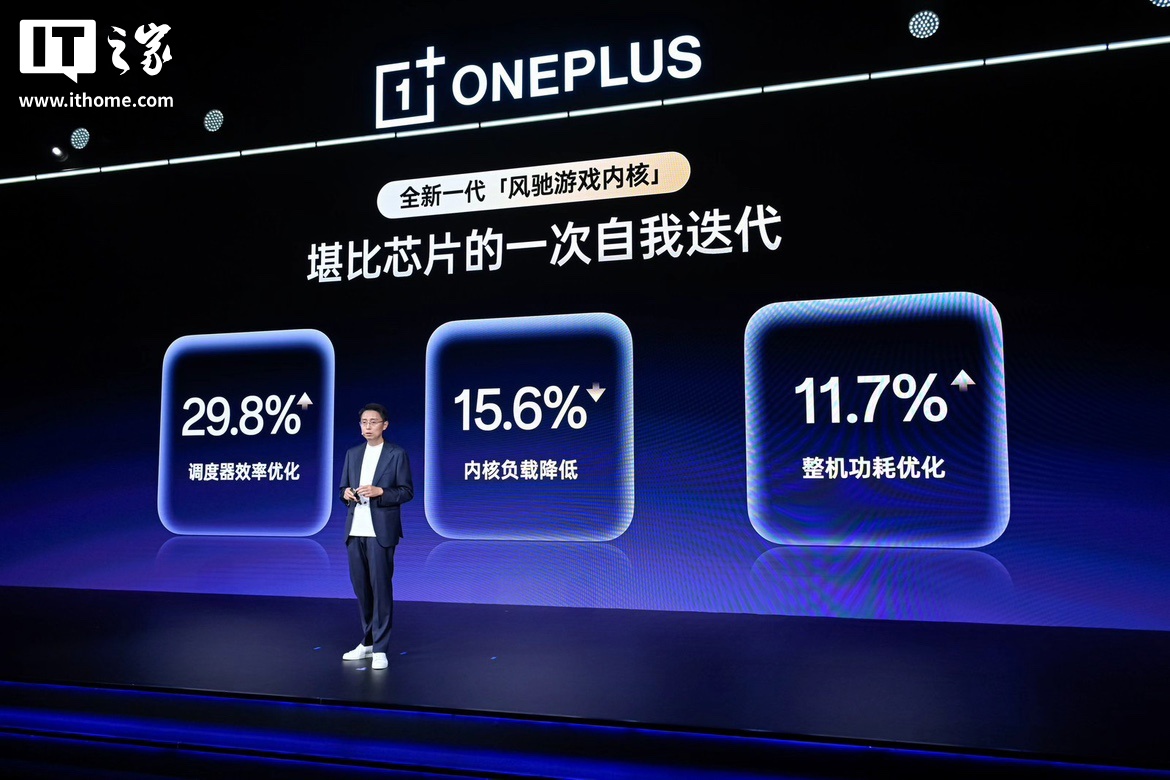 据介绍,一加 15 和一加 Ace 6 将搭载全新一代「风驰游戏内核」CPU、GPU、NPU 芯片首次协同,新增 NPU 推理,相比上代风驰游戏内核,调度器效率优化提升 29.8%、内核负载降低 15.6%、整机功耗优化 11.7%。