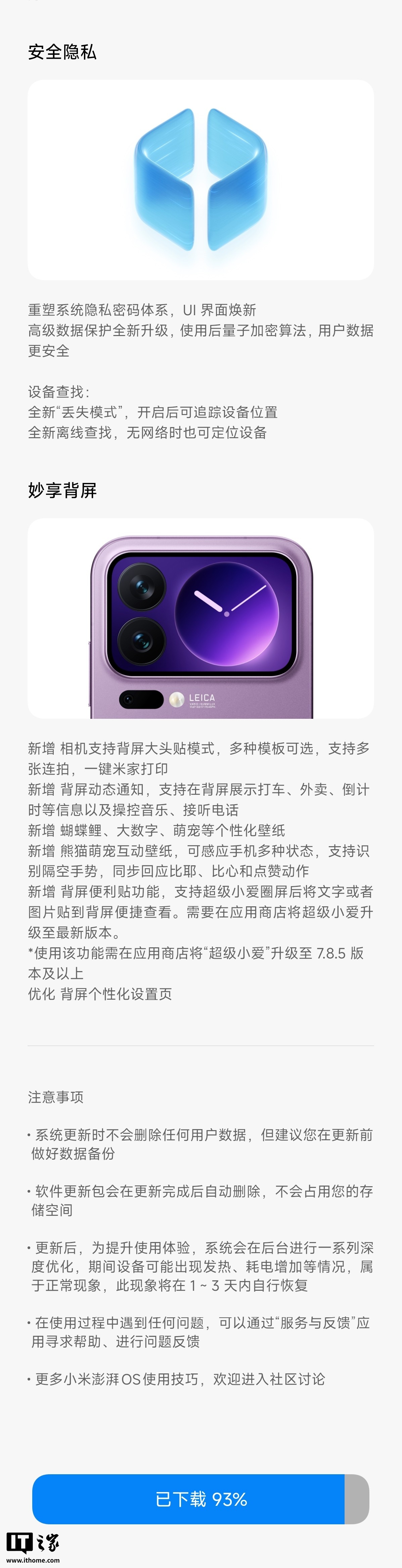 文章来源于互联网:小米 17 Pro Max 机型推送澎湃 OS 3.0.9.0.WPBCNXM 升级,含小米超级岛、超级小爱等