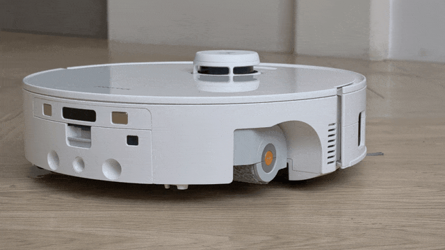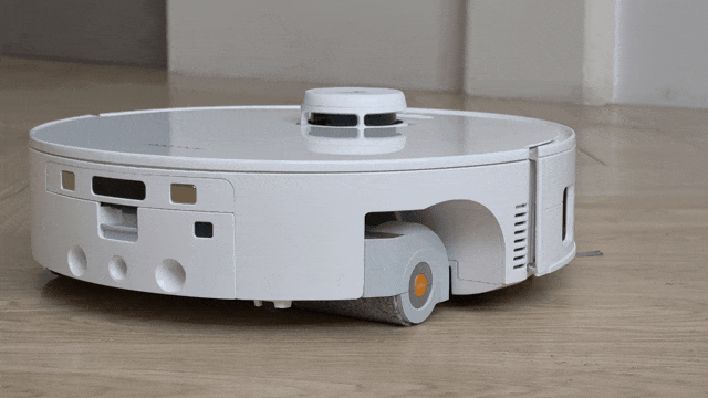 扫地机器人最容易留下的卫生死角便是墙边和家具边缘。P20 活水版通过升级的右侧加长边刷和自适应动态伸缩滚筒,完美解决了这一问题。当它进行沿边清洁时,滚筒可以根据与墙边的距离,在 43mm 的范围内进行动态伸缩,主动贴合边缘进行湿拖。
