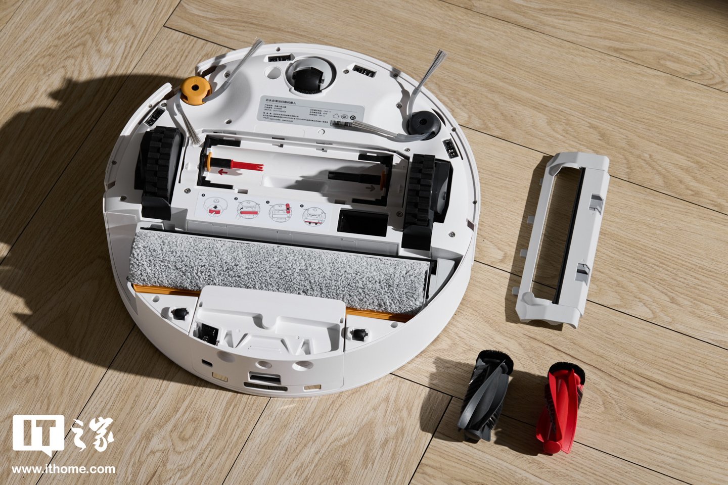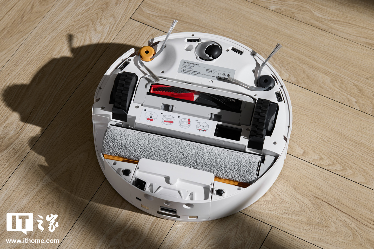 实际测试中,IT之家在地面泼洒了烧烤酱。这类黏稠且附着力强的污渍,对任何清洁工具都是不小的挑战。但面对它,石头 P20 活水版的滚筒能将污渍迅速剥离干净。