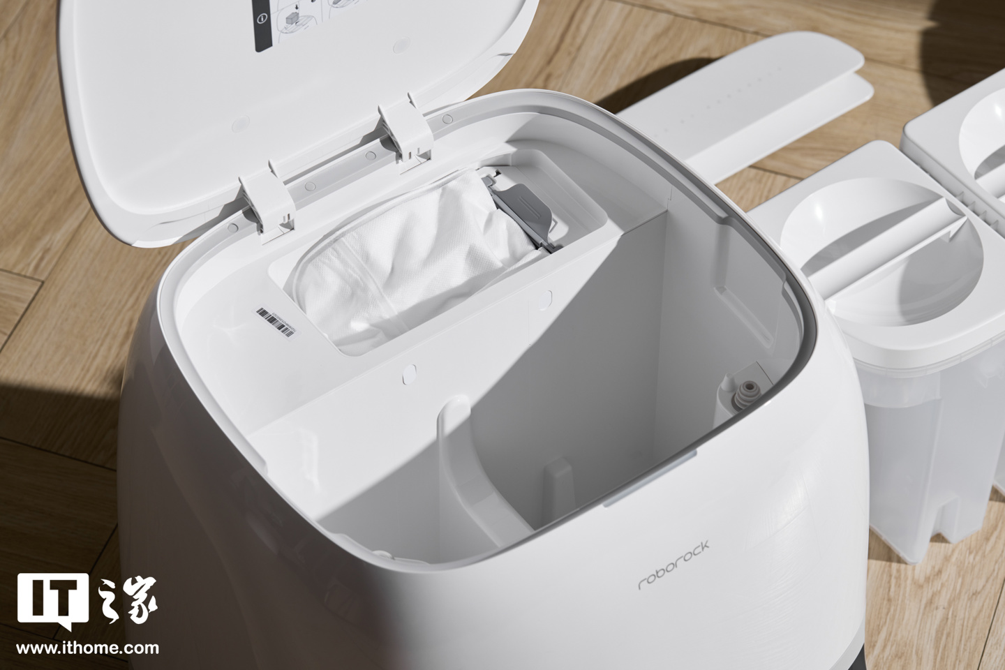 细节上,石头 P20 活水版基站内置了容量为 2.5L 的大尘袋,配合 E12 级过滤材质,能自动将扫地机器人尘盒中的垃圾吸入并密封。对于一个普通家庭而言,这个容量大约可以使用 60 天。