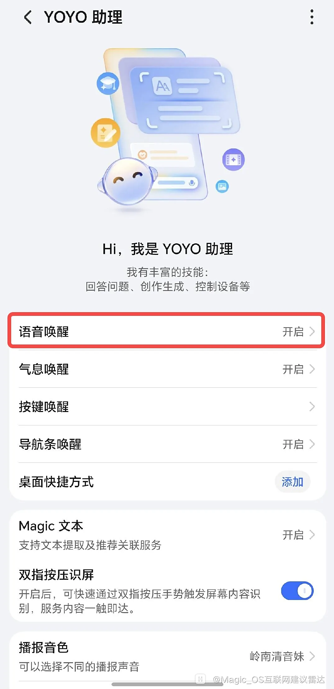 文章来源于互联网:荣耀 Magic UI 6.1 版本推送给 X20 等老机型升级,原预装的华为智慧语音更新为 YOYO 助理