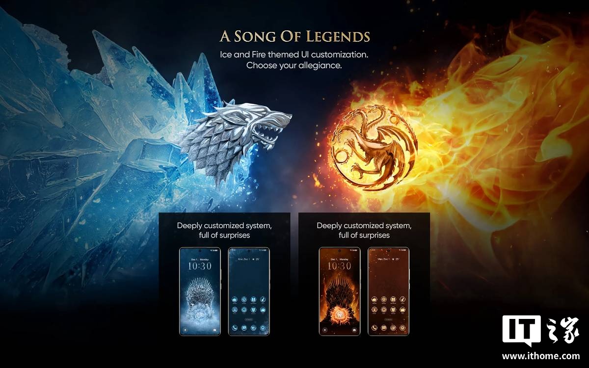 文章来源于互联网:realme 真我 15 Pro 手机《权力的游戏》限定版发布:后盖遇热自动变红,搭专属壁纸 / 主题