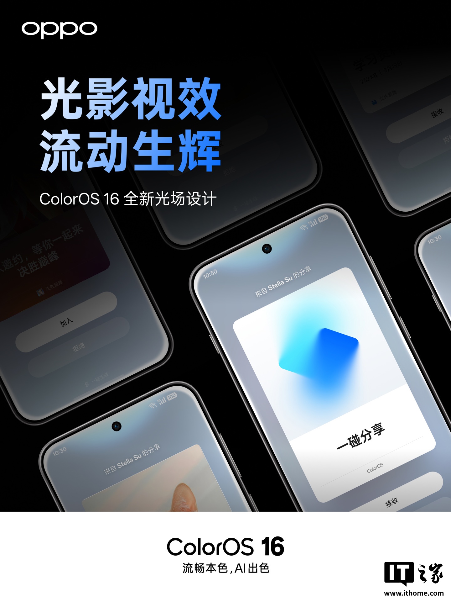 IT之家 10 月 9 日消息,OPPO ColorOS 官方今日宣布,ColorOS 16 系统将采用全新光场设计,宣称“模拟真实光影变化”。