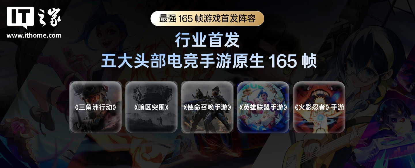 该屏幕支持行业六大类主流手游原生 165 帧,行业首发《三角洲行动》、《暗区突围》、《使命召唤手游》、《英雄联盟手游》、《火影忍者》手游原生 165 帧,165Hz 首次适配微信、QQ、小红书、微博四款头部图文类应用。