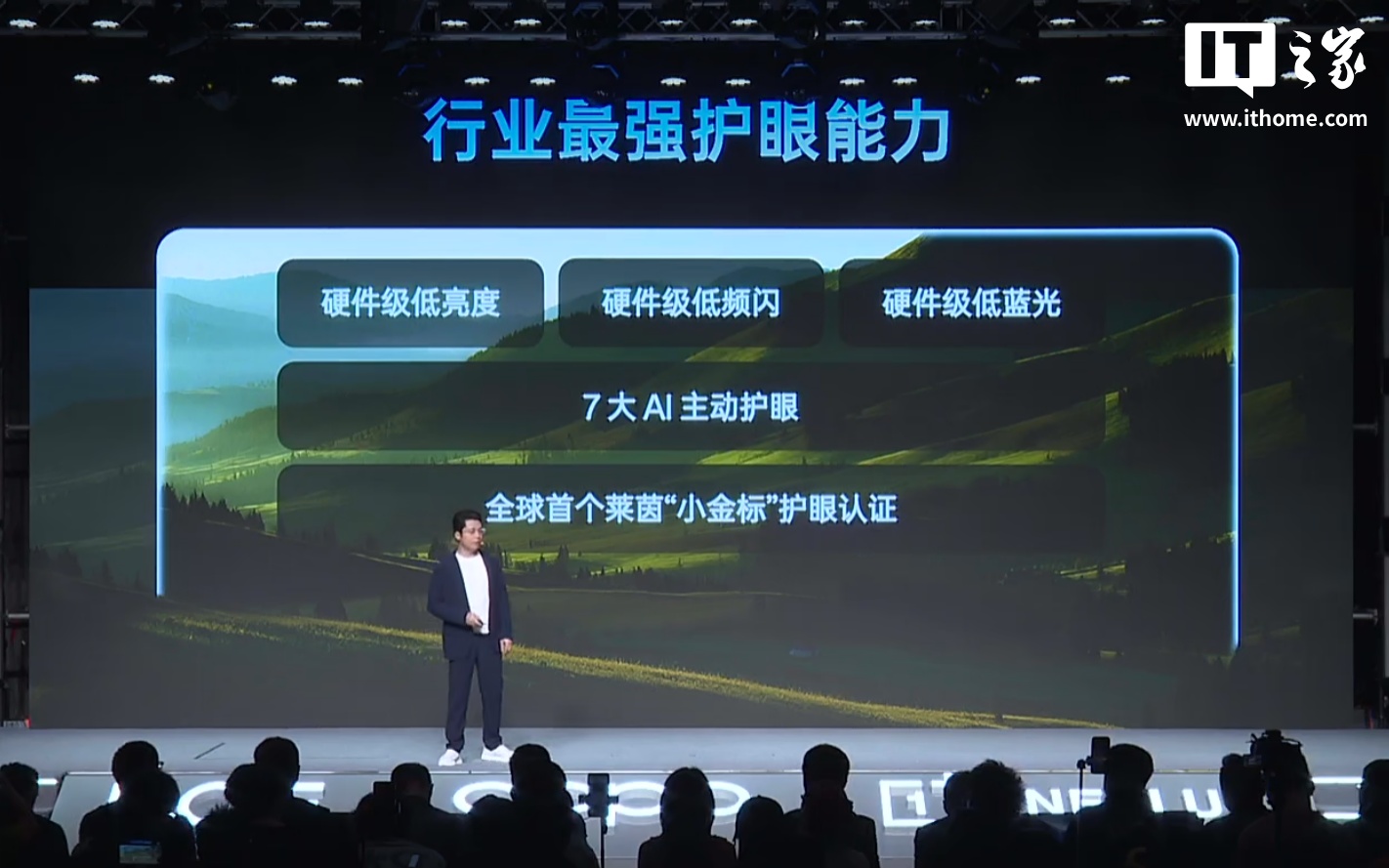该屏幕配备全新一代“明眸护眼”技术,支持硬件级低亮度、硬件级低频闪、硬件级低蓝光;还有“七大 AI 主动护眼”,包括 AI 眨眼提示 + AI 距离提示 + 晕动舒缓 + 节律舒眠 + 舒适色温 + 首发 AI 色温增强 + 暗光游戏护眼。