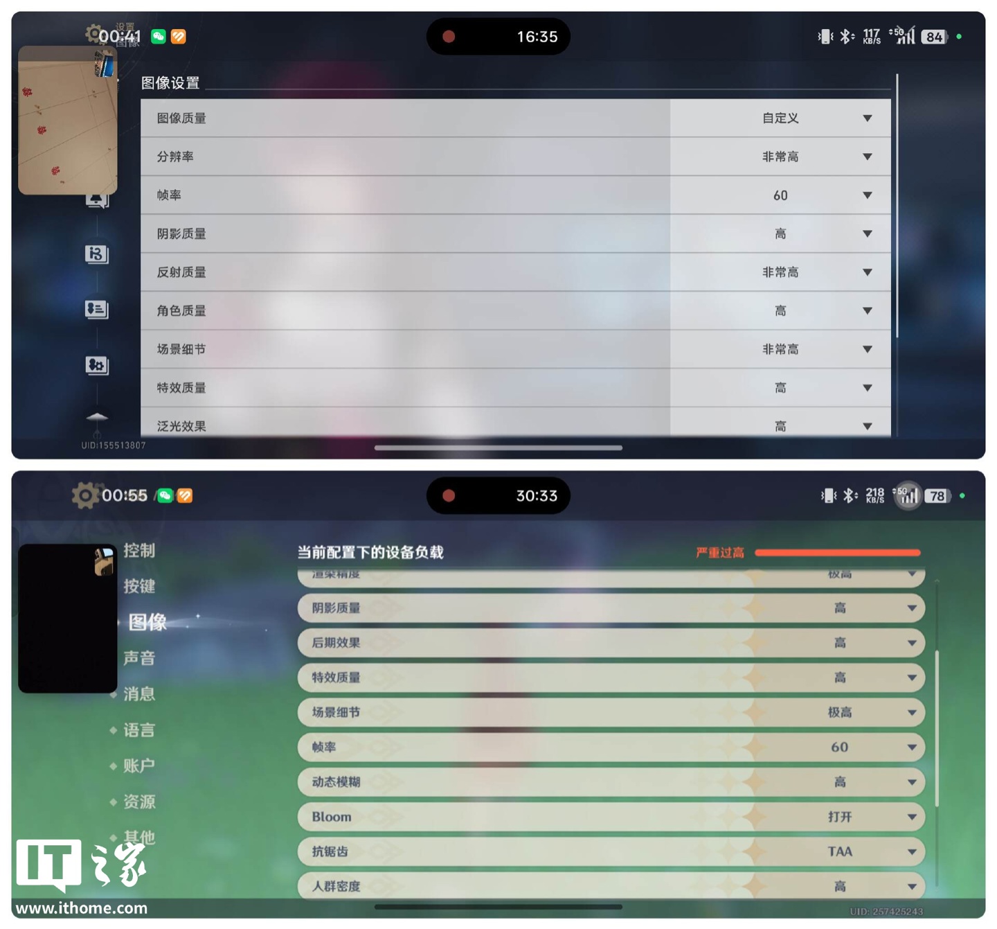 就比如在一些极端场景下的稳定性,IT之家这里简单粗暴测试:一边开着高画质的《原神》(前 16 分钟原神,后 14 分钟崩铁,原神切换至后台),一边微信视频通话,同时还打开了游戏录屏。这套操作足以让很多手机“压力山大”,掉帧、卡顿在所难免。