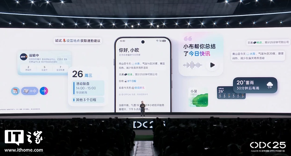 IT之家 10 月 15 日消息,在今日的 ColorOS 16 发布暨 2025 OPPO 开发者大会上,OPPO 正式发布了 ColorOS 16,宣传语为“流畅本色,AI 出色”。