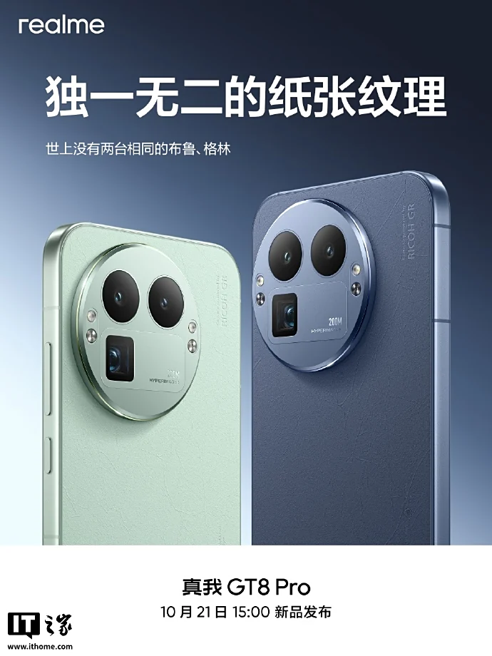 IT之家 10 月 16 日消息,realme 真我官方今天在微博发文,解密 GT8 Pro 手机的后盖材质,号称拥有“独一无二的类纸纹理”。