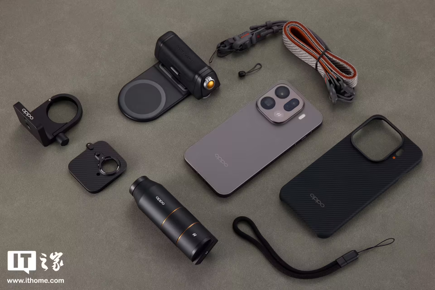 最后,OPPO 这次同样带来了哈苏专业影像套装 —— 包含哈苏专业增距镜、全新磁吸手柄、磁吸保护壳、专业手机肩带。