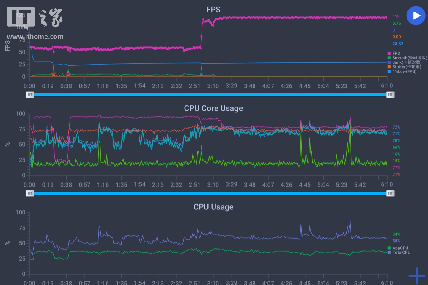 具体到游戏实测环节,《原神》开启最高画质的重载负载下,帧率仍能稳定逼近满帧;整机平均功耗仅 4W 出头,机身表面温度也控制在 40℃左右,性能释放与散热控制的平衡做得很到位。
